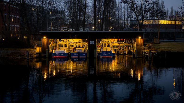 A fresh morning after a frosty night with sub-zero temperatures. I wasn't feeling quite myself this morning, so I slept in a little longer, got up later, and just did a short three-bridge loop, followed by shopping for treats for the coming days. I did a few breathing exercises on the bridges and thoroughly enjoyed the clear sky and sunshine. I wasn't really in the mood for taking photos, so I edited some pictures from another day for you. First up, a sunset instead of a sunrise. Then there's the water police station here on the Spree.