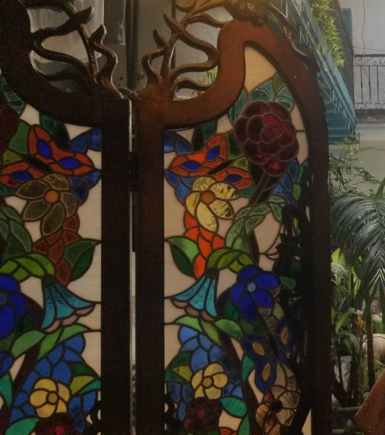 En mi andar pase por una casa que tenía su puerta entre abierta y en su parte interior observé una bella mampara con preciosos vitrales.