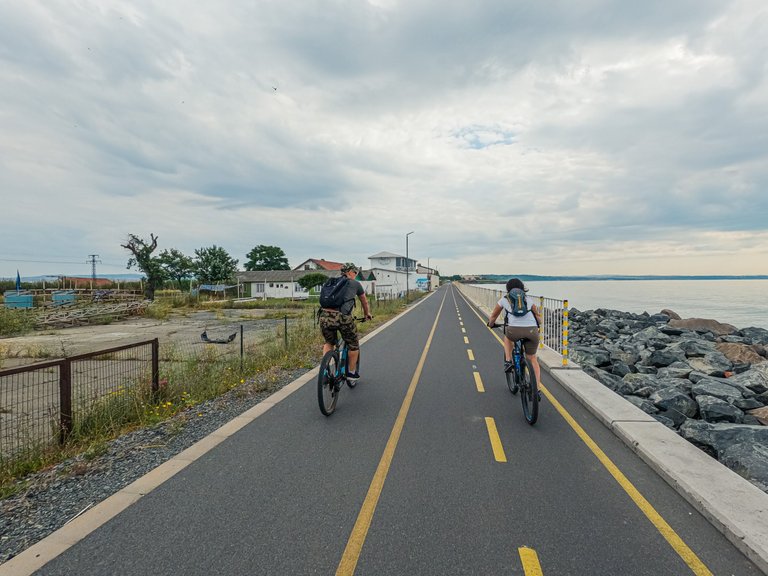 It appears very nice and without a stop, we ride to of the first pier at the beginning of Pomorie. No harsh sun little wind an awesome start for the day.