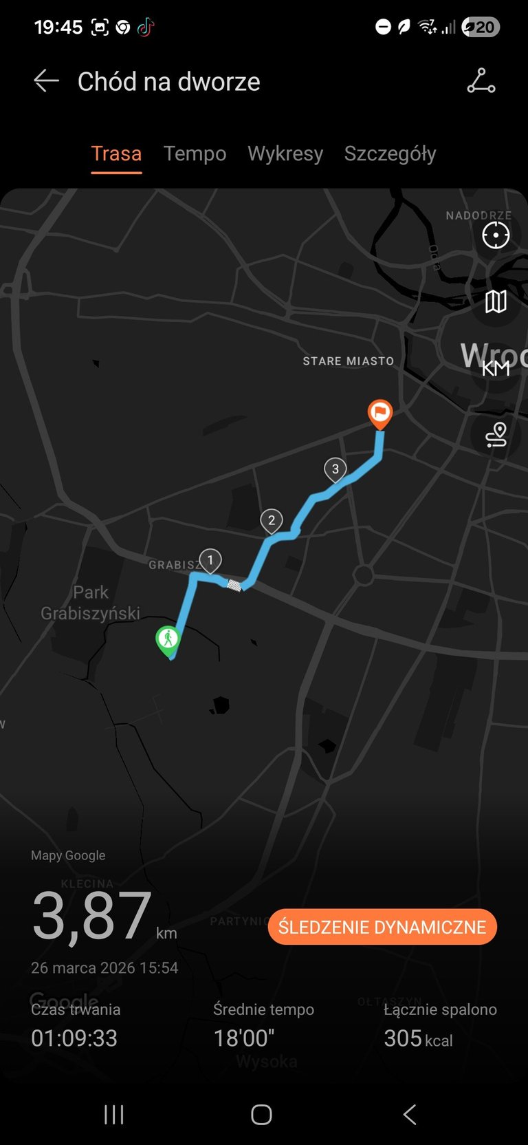 – popołudniowy: 3,87 km (już spokojniej, ale dalej w ruchu)