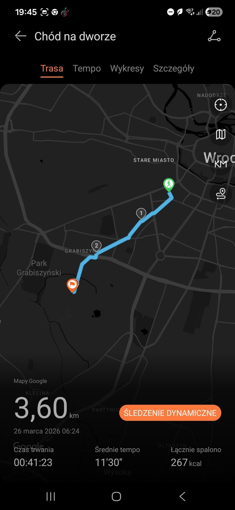 – poranny: 3,60 km (szybszy, konkretny marsz)