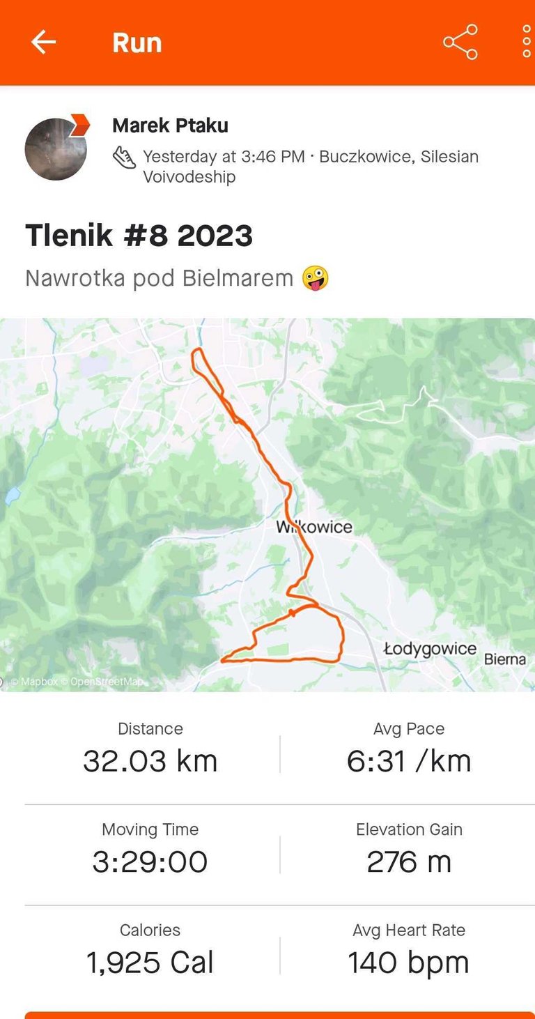 Przygotowuję się do kwietniowego startu w maratonie w Krakowie (@hallmann - liczę na doping 😉), wiec trzeba nabijać kilometry, ale 32 km to dla mnie już mega duży dystans, jak na trening 🤪