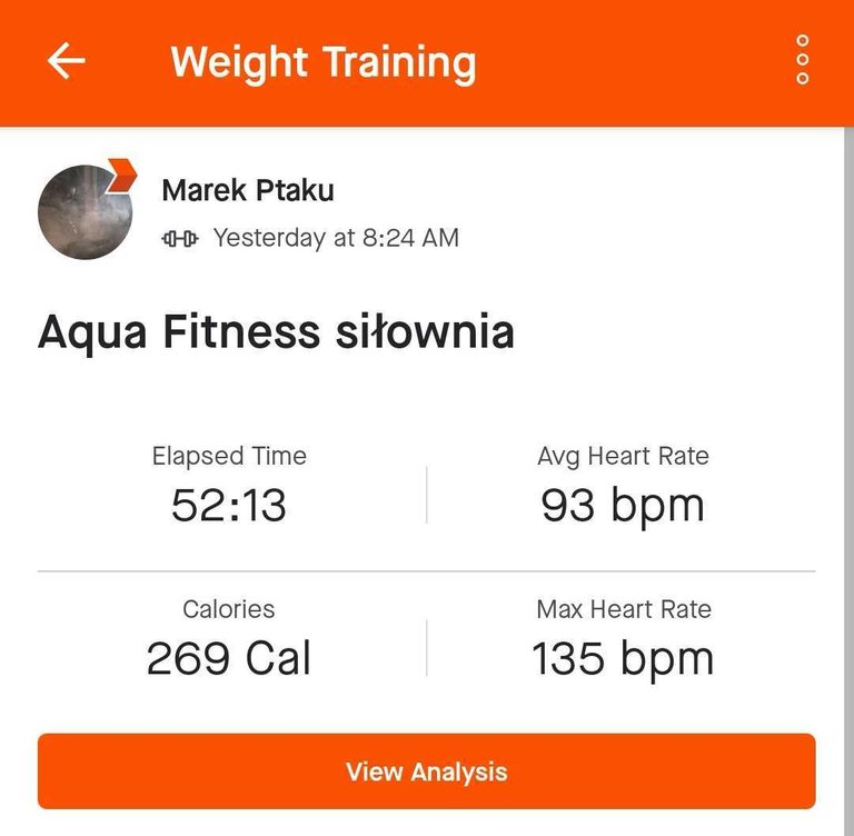 52 minuty włączając w to końcowe dość długie rozciąganie - tyle zajął mi trening siłowy.