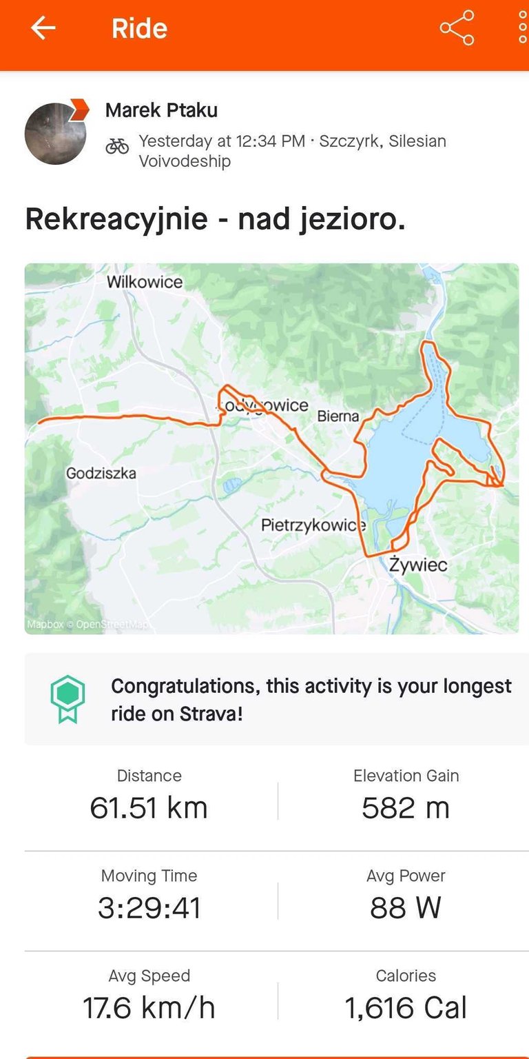 Jak poinformowała mnie Strava, była to moja najdłuższa zapisana jazda na rowerze.