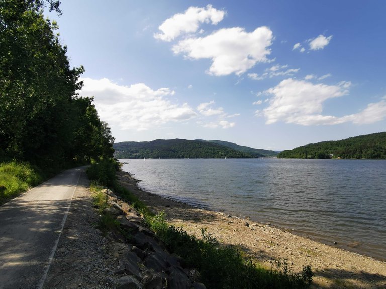 W trakcie jazdy przypomniałem sobie, że koleżanka z Żywca ostatnio wspomniała o wydłużeniu ścieżki rowerowej wzdłuż jeziora o kilka nowych kilometrów.