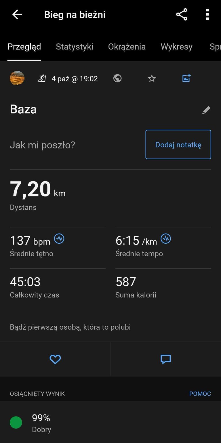 Wyszedł z tego fajny trening aerobowy, i cel został osiągnięty - powoli zbliżam się do normy jeśli chodzi o "spokojne ćwiczenia aerobowe".