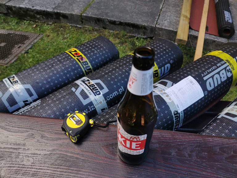 Kilkanaście rolek papy po 30 kg sztuka wyniesione na dach po drabinie 😵💫