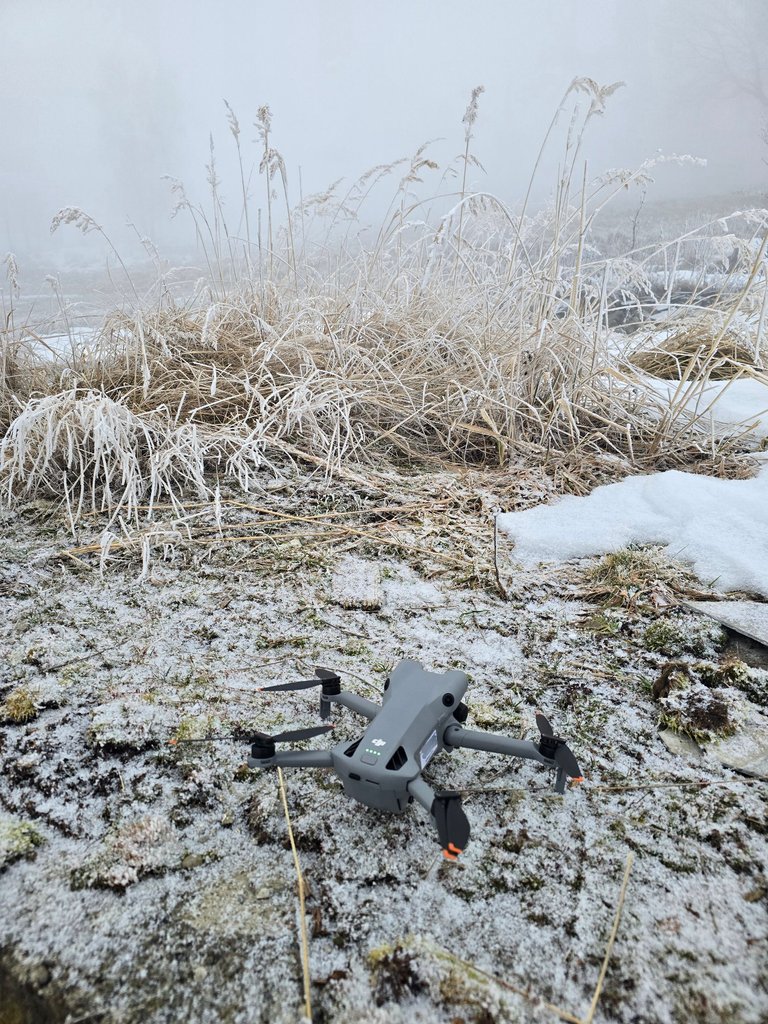 Freezing fog quickly settled on the propellers, limiting the flight to an absolute minimum. Short lifts, full focus, and quick landings — safety mattered more than ambition.