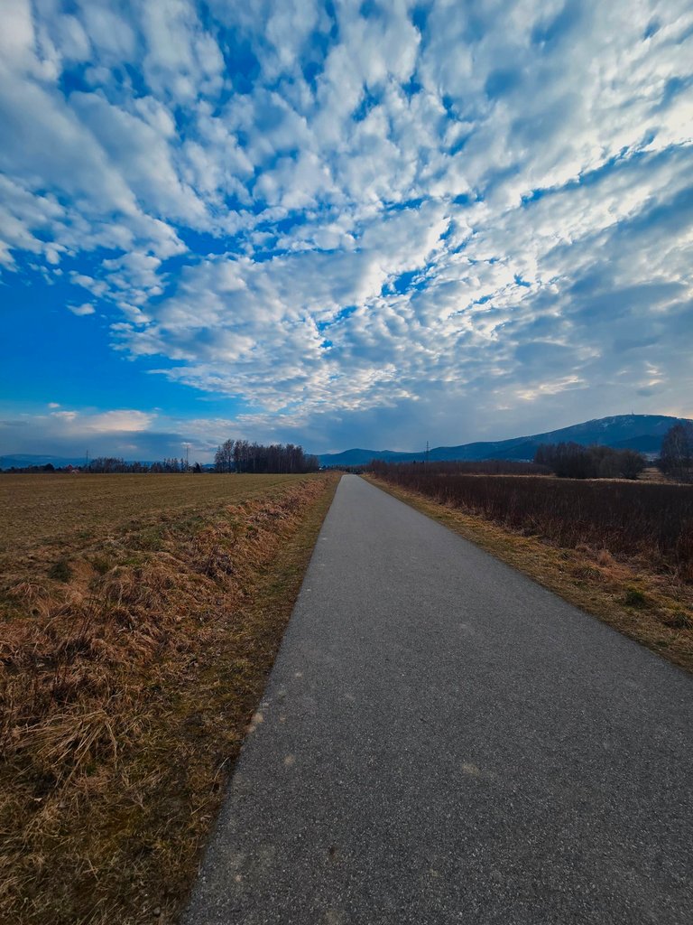 A few days earlier I noticed on Strava that a friend had been running around a newly built pump track in Łodygowice, so I decided to check it out myself. The route led through small side roads and paths across open meadows, heading toward the town at an easy pace. After about 10 km of jogging I reached the pump track and did two laps around the new loop. On a Sunday afternoon the place was full of people — kids with their parents, bikes, rollerblades, skateboards, and me trying to squeeze in a couple of running laps between them. A bit chaotic, but a good place to test.
