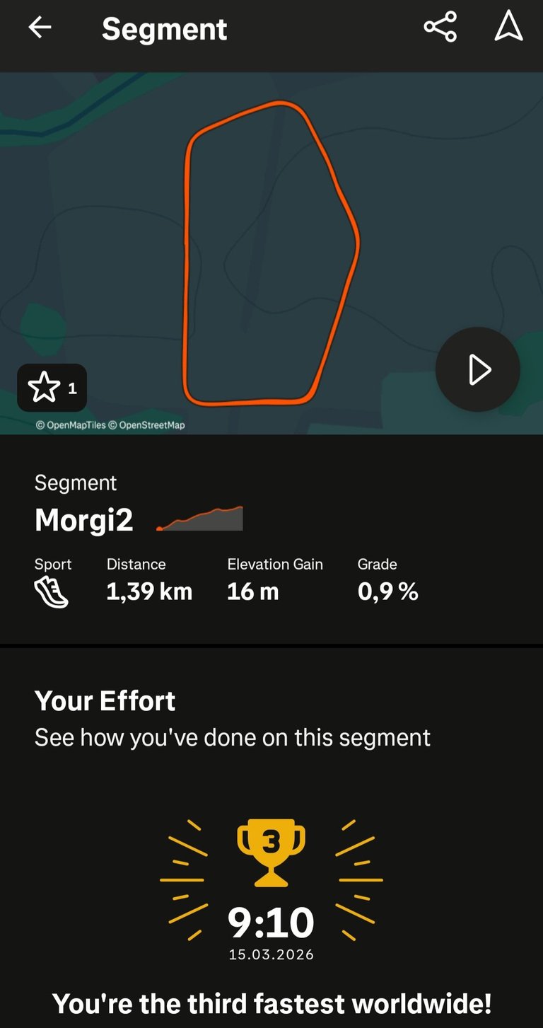 To oczywiście nie jest stadion — pętla nie jest idealnie płaska, a zakręty mają prawie dziewięćdziesiąt stopni. Mimo to miejsce ma swój urok i może być ciekawą alternatywą, kiedy chce się zrobić coś szybszego poza klasycznym stadionem. Myślę, że jeszcze tam wrócę, na przykład przy jakimś treningu typu 4 × 600 metrów w szybszym tempie.
