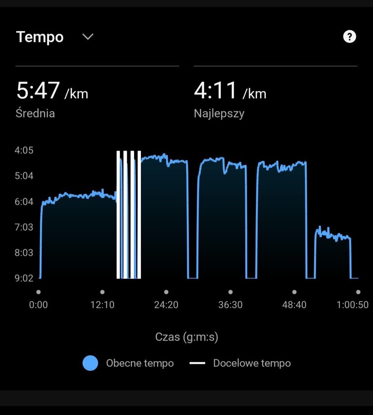 To był mocny trening, ale pod pełną kontrolą. Typowa praca progowa – wymagająca, lecz stabilna. Bez chaosu, bez szarpania tempa, bez walki o przetrwanie.