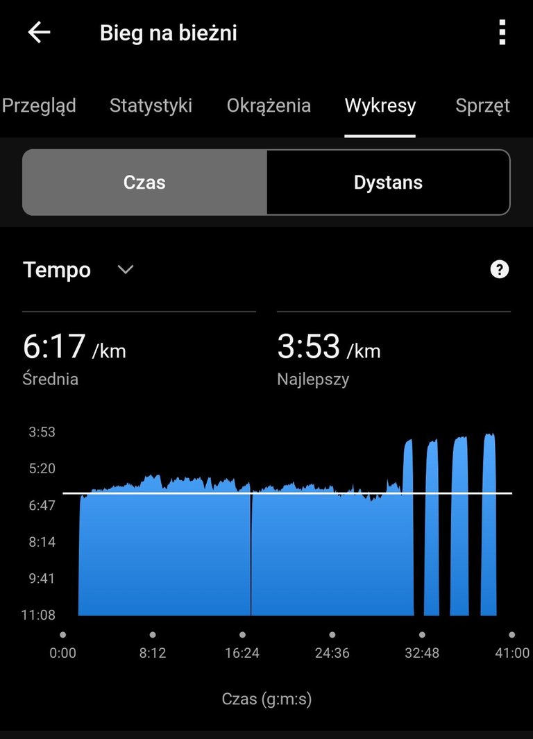 To już nie były klasyczne przebieżki, tylko bardziej kontrolowane wejście w tempo. Kadencja poszła w górę, kontakt z podłożem się skrócił, ruch stał się bardziej dynamiczny.