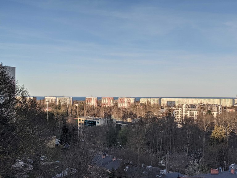 Tu widok z bloku z ulicy Gdańca w Oliwie. Było już później to morze lepiej widać