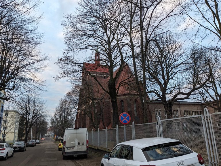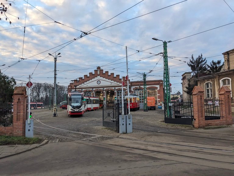 Nowy Port do dziś zachował ten surowy, portowo-przemysłowy charakter. Jechałem wąskimi uliczkami ze starą zabudową, z tramwajem biegnącym środkiem jezdni. Obok klasycznych kamienic pojawiały się hale portowe, warsztaty, place składowe – węgiel, złom, infrastruktura techniczna. To przestrzeń zupełnie inna niż „miejski” Gdańsk znany z chodników, skwerów i placów.