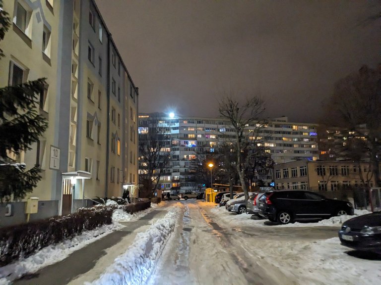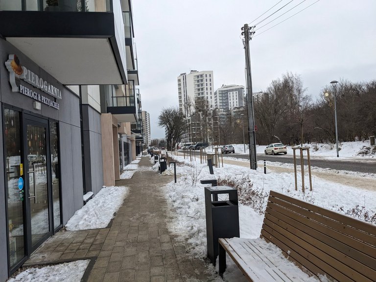 Jazdę podzieliłem na 2 części. Ogólnie to marznę bardziej w dzień. W nocy jest jakoś gorąco (-7). Po ciemku jeździłem po Morenie i było to opłacalne. Kurs za 50 złotych zaprowadził mnie na premie górskie naszych gdańskich Kaszub. Ciekawa była sytuacja z domofonem przy furtce, którym połączyłem się do bloku spoza ogrodzonego osiedla. Na szczęście szybko zadzwoniłem dopytać o szczegóły i jedzenie sprawnie trafiło do klientki. Ostatnie zlecenia to było zbliżanie się do domu.