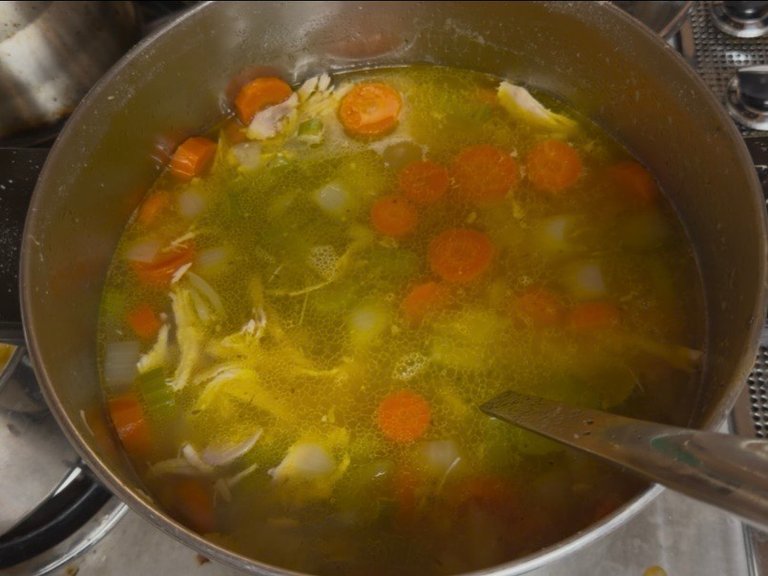 I walked home from the grocery store with a noodleless chicken soup option for me.