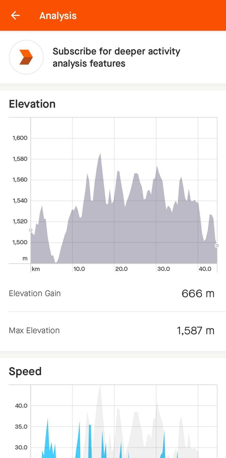 The photo above gives the elevation and the one below shows my speed over the cause.