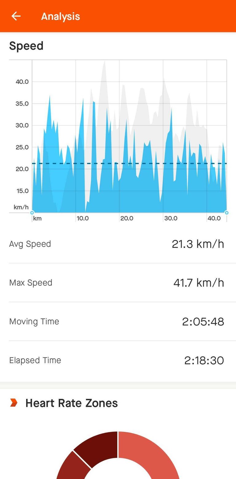 The race went very well. I did the 40km, in a time of 2:05, which gave an average speed of 21 km/h.