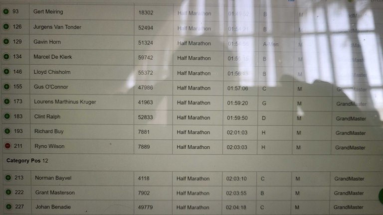 I ended at number 211 overall and no 12 in the Grand Master category. (Ryno Wilson on the table)