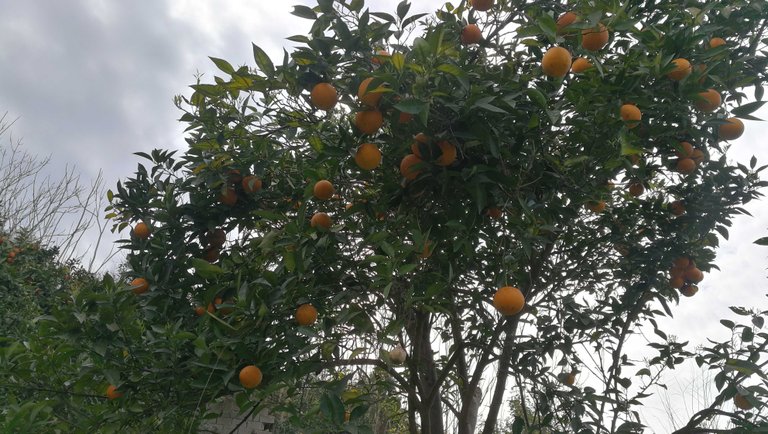 There is still some oranges on trees. It's very enjoyable to pick them and eat them right away