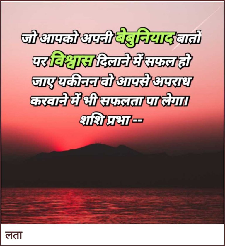 जो आपको अपनी बेबुनियाद बातों पर विश्वास दिलाने में सफल हो जाए यकीनन वो आपसे अपराध करवाने में भी सफलता पा लेगा।