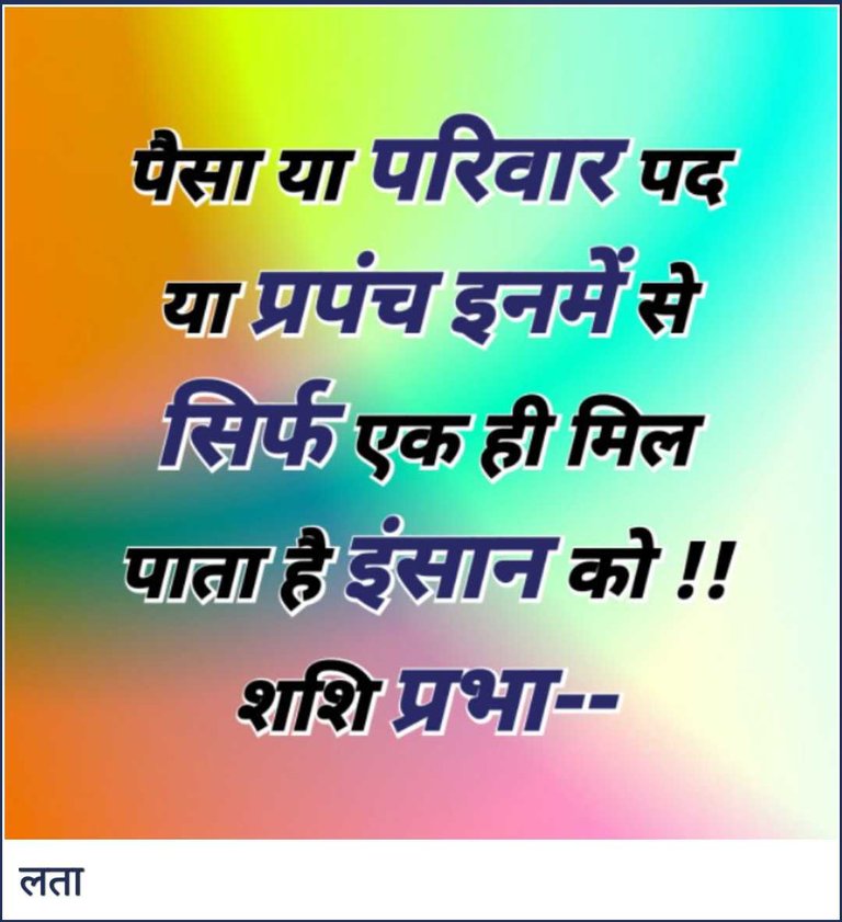 पैसा या परिवार या पद या प्रपंच इनमें से सिर्फ एक ही मिल पाता है इंसान को !!