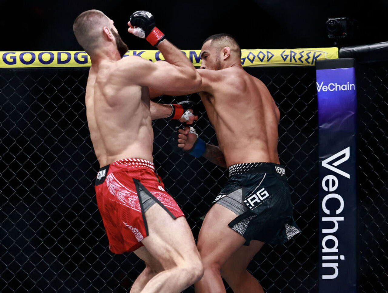 It was just a bit under 4 minutes when a lightning quick right made clean contact with Jiri's face and he immediately crumpled to the ground just like 99% of people not named Roy Nelson would have done. From that point it was just a few light ground and pound punches before Herb Dean called it off and declared Carlos Ulberg the light-heavyweight champion of the world.