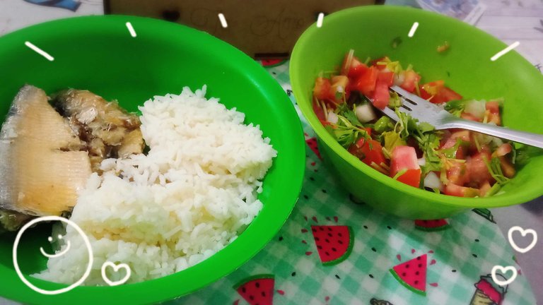 Luego de más de una hora caminando, mi cuerpo comenzó a mostrar signos de cansancio. Tomé un descanso, bebí agua y decidí que lo mejor era regresar. Había recolectado suficiente información y tenía otras actividades pautadas para el día de hoy. Como tengo que cocinar para mí sola, a veces me tengo que obligar a comer. Me concentro tanto en lo que hago, que se me olvida y se me pasan las horas. Así que trato de cocinar cosas que me provoquen para incentivarme a comer. En ésta oportunidad, tenía muchas ganas de comer pescado. Pero no sé mucho de cocina, así que simplemente compre sardinas enlatadas jaja las acompañé con una ensalada de tomate y cebolla, junto a un poco de arroz. A pesar de ser algo simple, estuvo sumamente delicioso y básicamente lo devoré jaja extrañaba consentirme de este modo.