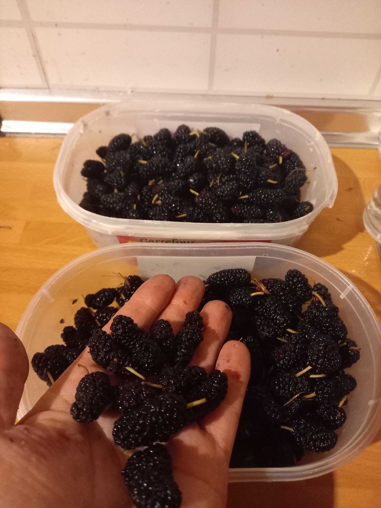 The wind today kept me from training like I wanted (I also felt extremely tired again) but at least it was good for something. The mulberries just had been falling from the tree at my training ground at the University... Both my children and I love them, but since the branches have been cut short we couldn't pluck this year. We won't be able to eat them regularly but this time we've got a lot! Pace want good at 2km (3'56") so I decided to keep it calm and only did an additional 500m and 200m over a distance of almost 10km. #AliveAndThriving #alive