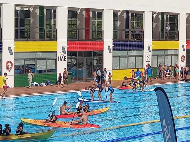 First we did our individual races and after that we got the possibility to do a relay the the of us: 1500m running for me, 300m swim for my daughter Claudia and 750m run for my son Mathias. Afterwards more fun for them with canoes and paddle surf :-)