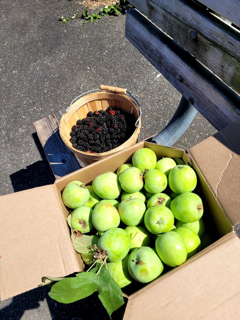 And in about an hour my wife and I collected a fair amount of apples and blackberries.