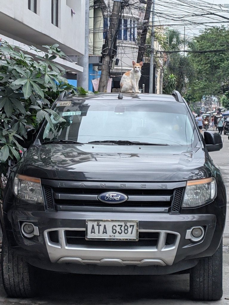 While I was out walking I did stop and pause for this cat. Seems he found a great lookout point from which to see the world.