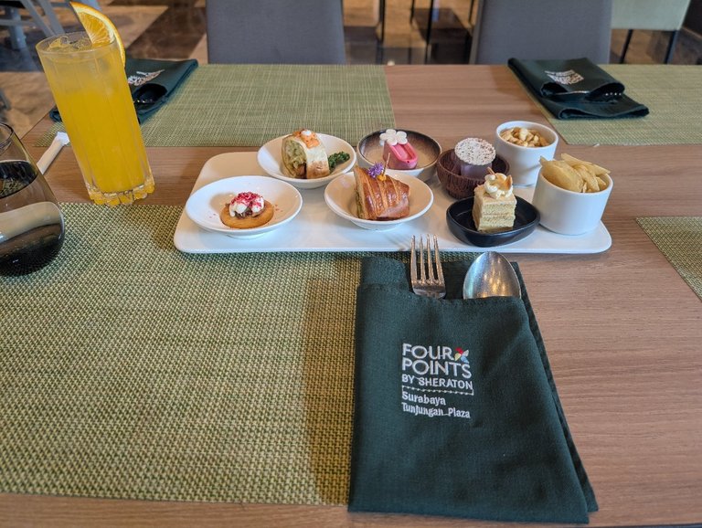 The Four Points hotel was much nicer than I expected. It doesn't have a lounge but they treated me to high tea when I arrived. Except I don't drink tea or coffee...but they were kind enough to bring orange juice.