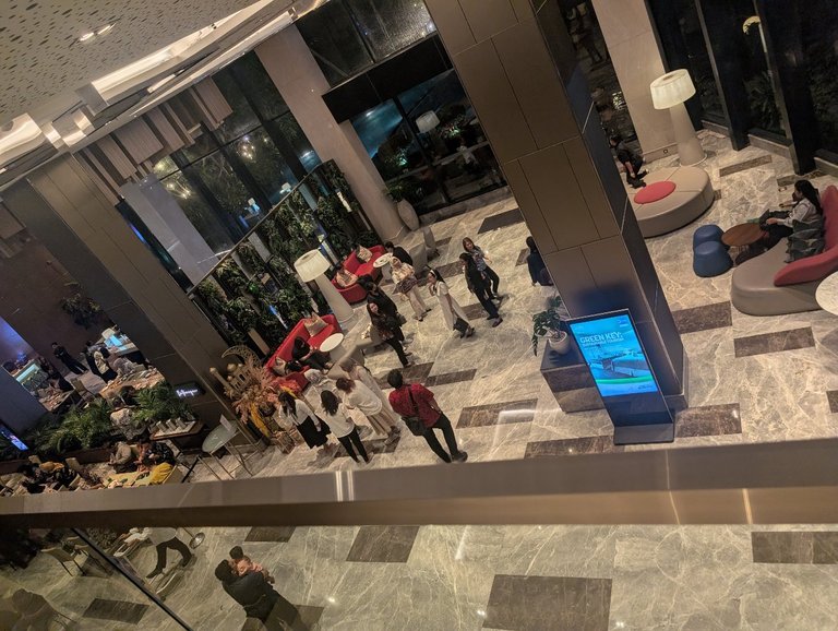 There were people everywhere during the meal time. I was hot and sweaty from the gym and had to go through a bunch of people to talk to the front desk for an HDMI cable. Kind of embarassing as everyone was wearing fine clothes and I'm in sweatpants and a sweaty shirt..