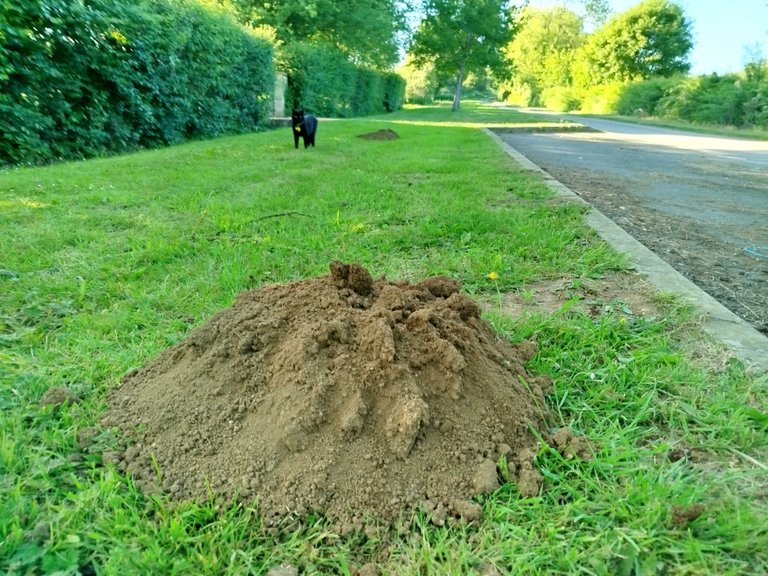 On the way back, she needed the toilet! Luckily, she found a molehill.🤣