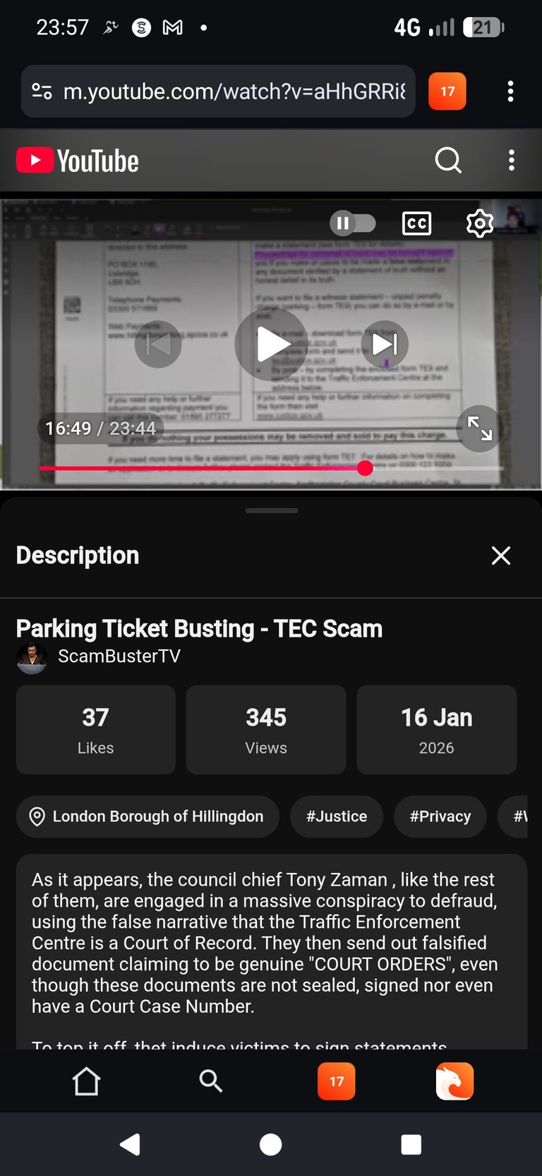 As it appears, the council chief Tony Zaman , like the rest of them, are engaged in a massive conspiracy to defraud, using the false narrative that the Traffic Enforcement Centre is a Court of Record. They then send out falsified document claiming to be genuine "COURT ORDERS", even though these documents are not sealed, signed nor even have a Court Case Number. To top it off, thet induce victims to sign statements alluding to "CONTEMPT OF COURT" if they make false statements. And then another level is blown, when they send violent thugs to steal asest such as cars, claiming that they have an authentic "WARRANT" issued by the court, when no application was ever made. We break down the scam from a real world extortion document, and there is a further video