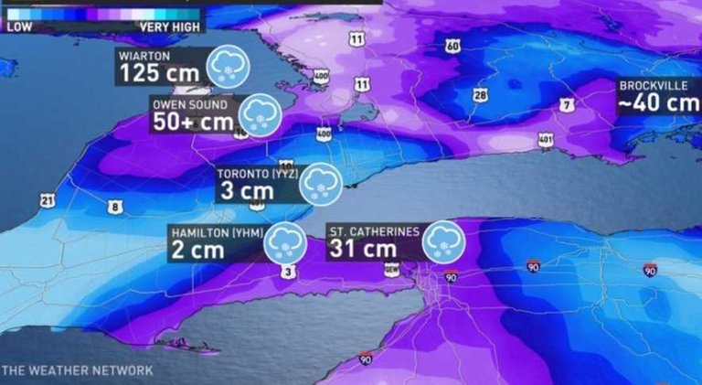 Niagara Region/West-Central Southern Ontario/parts of Eastern Ontario - 80-135+cm