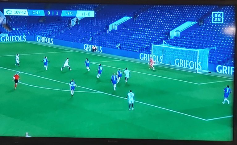 Parece que isto acabou. O Chelsea tinha ganho em Lyon mas o Lyon deu a volta. A 10 minutos do final do prolongamento o Chelsea precisa de marcar 2 para se safar...