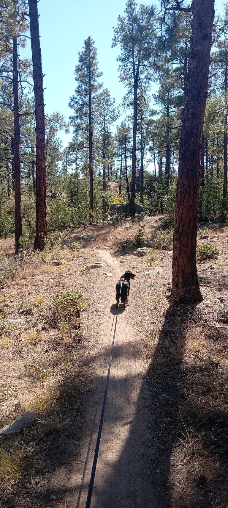 Lulu was happy to be way out front as we cruised along on the mostly downhill grade as we wound around the forest before joining back up with the wide Javelina Trail for a bit and then it was back onto single-track trails for the uphill back to the trailhead.