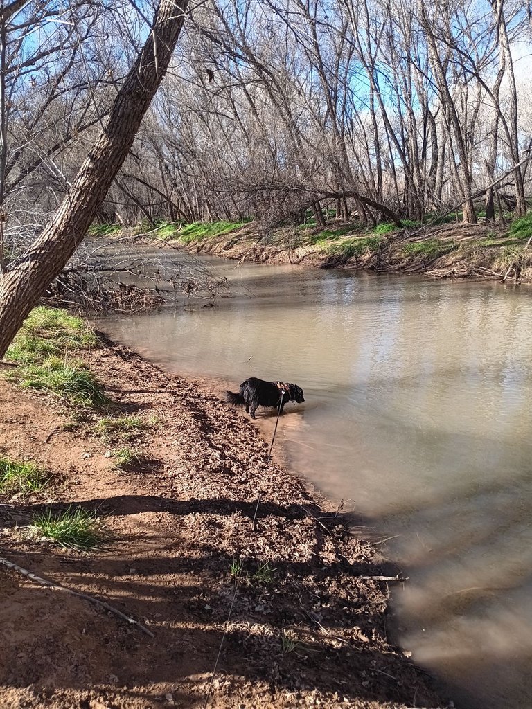 Lots of people out and about in Old Cottonwood and we crossed paths with several more on our walk. Lulu got to meet a few friendly dogs along the way and there's always plenty of spots for her to smell and explore and the gentle river is always a welcome spot to check.