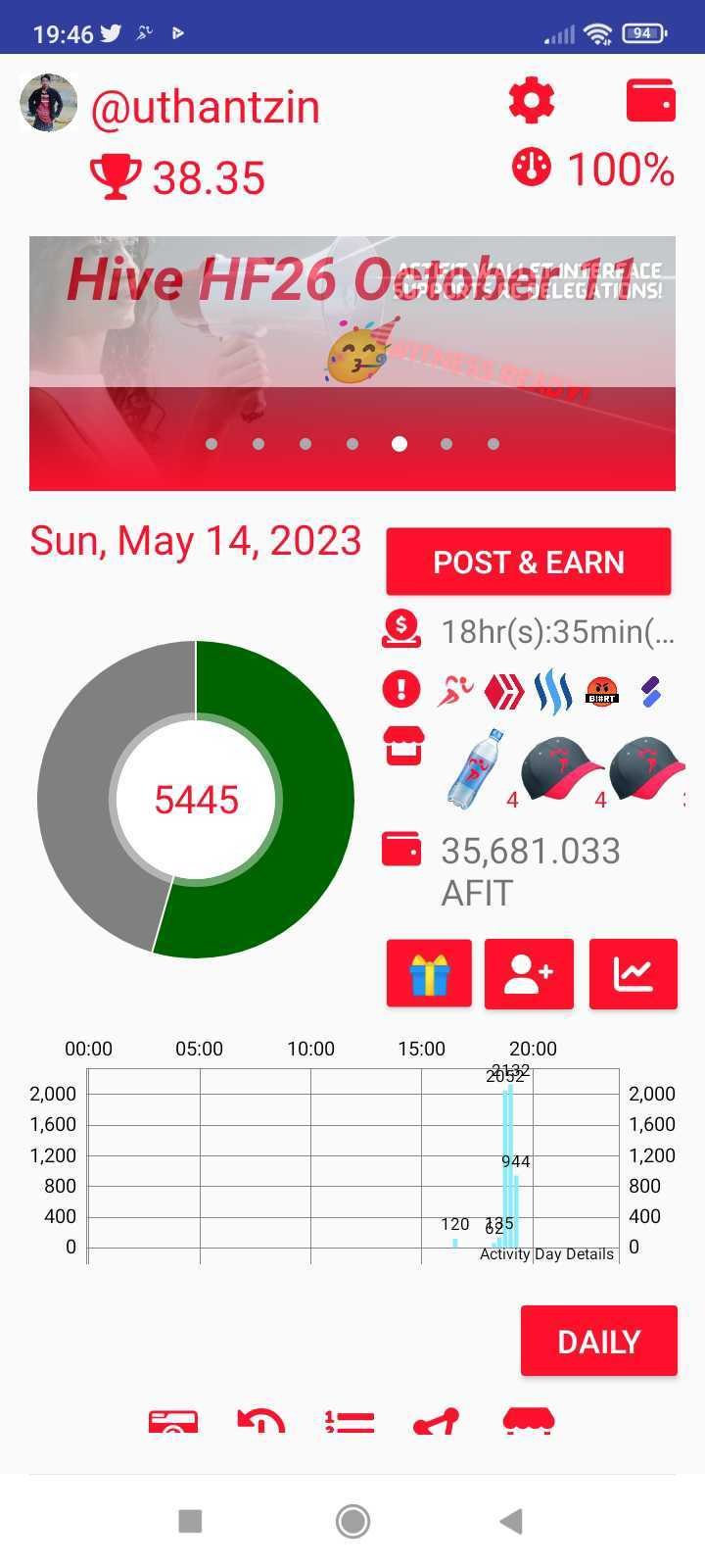 Now I had totally 35681 AFIT Tokens on my Actifit account.