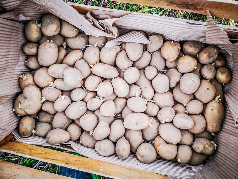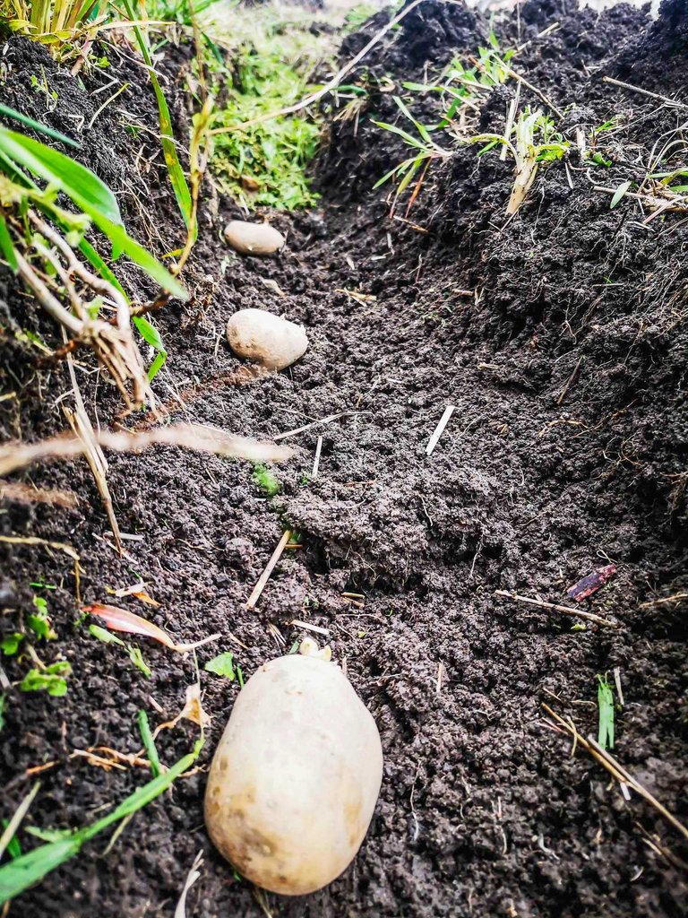 We planted them at a distance of 30 cm and covered them with a mixture of ash, grass clippings and biochar.