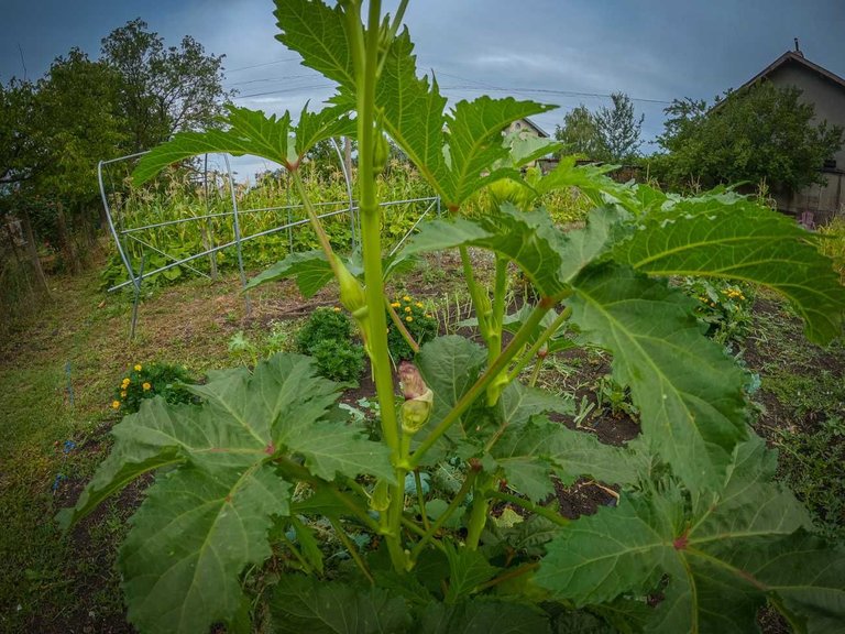 Corn and okra are getting taller.