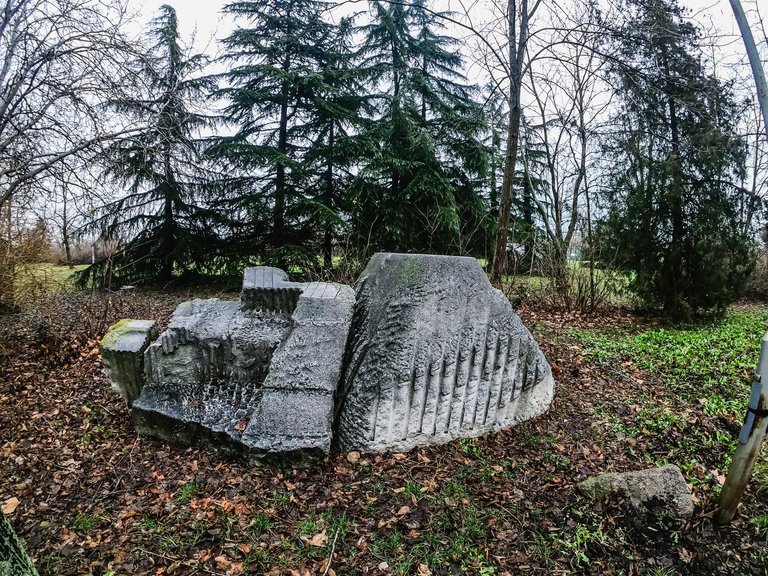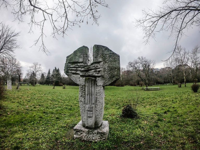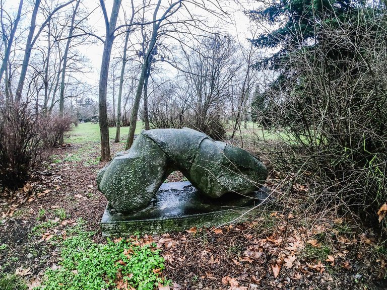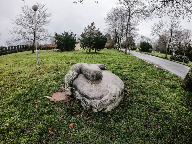 I hadn't been through one of the city's marine parks in a long time. It is large, with spacious lawns, walkways and recreation areas. In this gloomy winter weather, the stone sculptures are especially interesting - stable, quiet and bathed by the January rain.