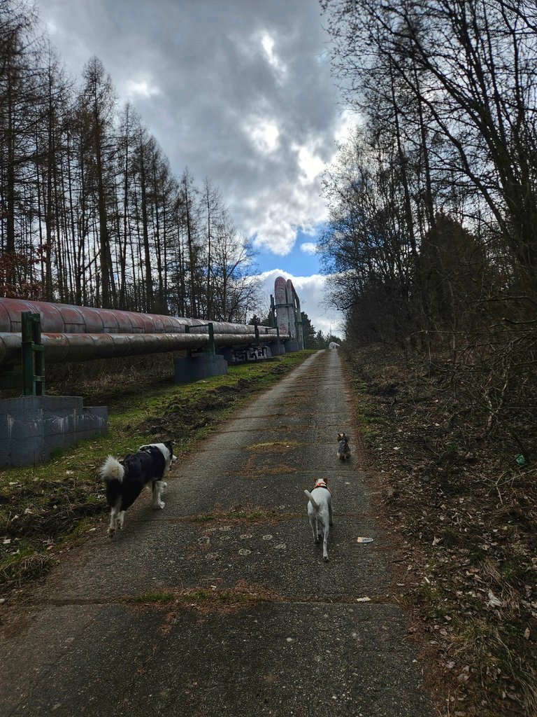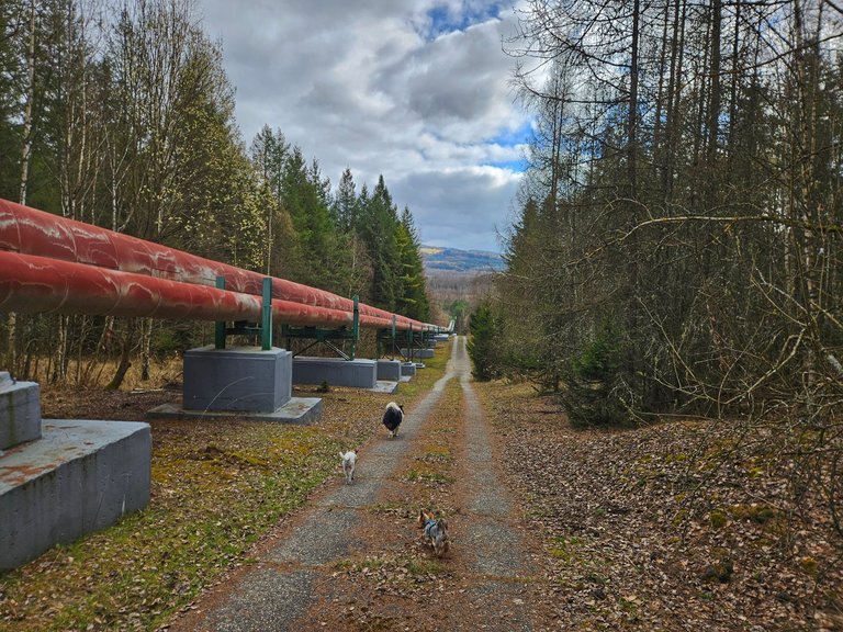 We took our favorite loop trail, which leads along the heating pipes supplying the city, past Lake Medard, and back home through the town center.