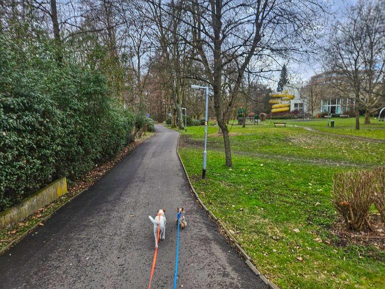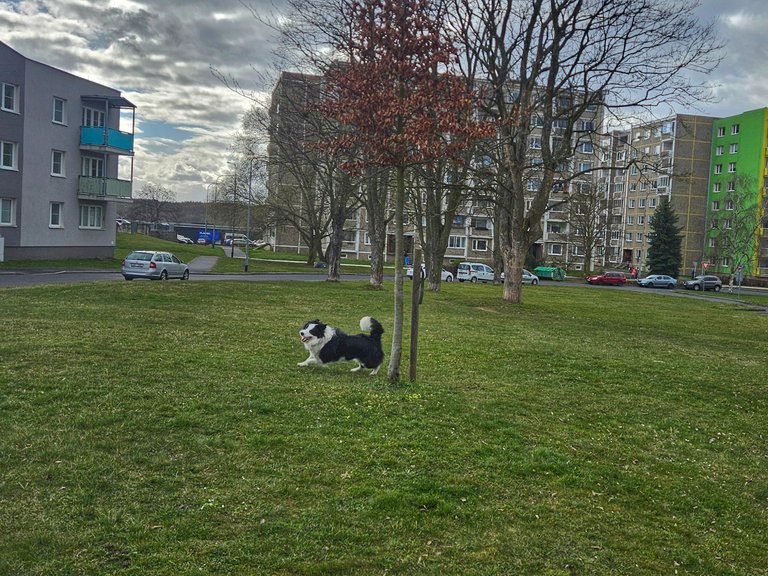 Odpoledne jsem rychle vyvenčil synova psa Danteho a potom se vydal s našimi psy naproti manželce, když se vracela z práce.