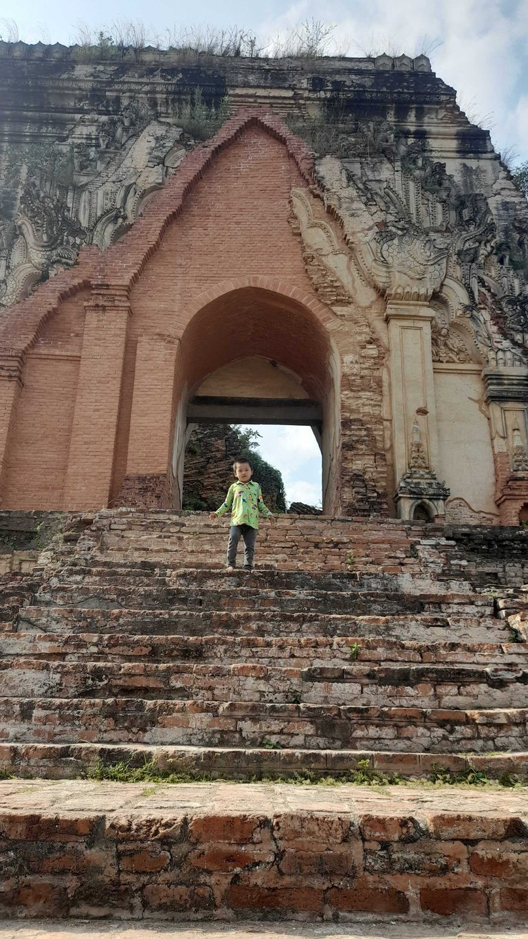 My son had reached to Ancient Temple of InnWa old city , Mandalay Region, Myanmar.
