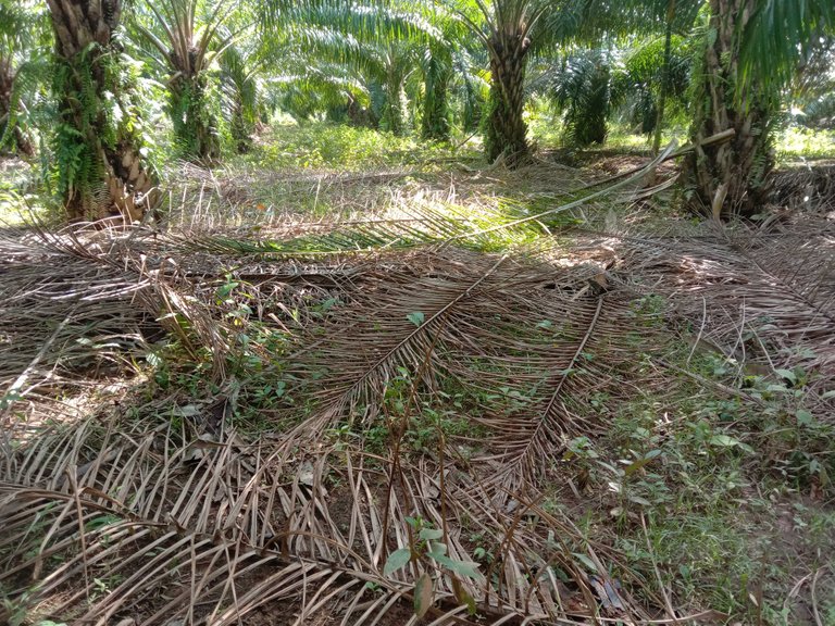 The purpose of moving the palm fronds is to make it easier for harvesters and transporters to walk and pick the fruit, besides that, it is also for cleanliness.