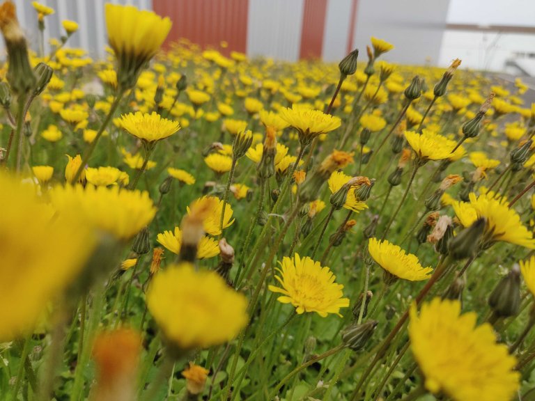 En partant, je suis arrivé sur la parking avec tous les espaces verts en fleur, et le soleil qui tapait, je me suis juste calé dans ma voiture au chaud.