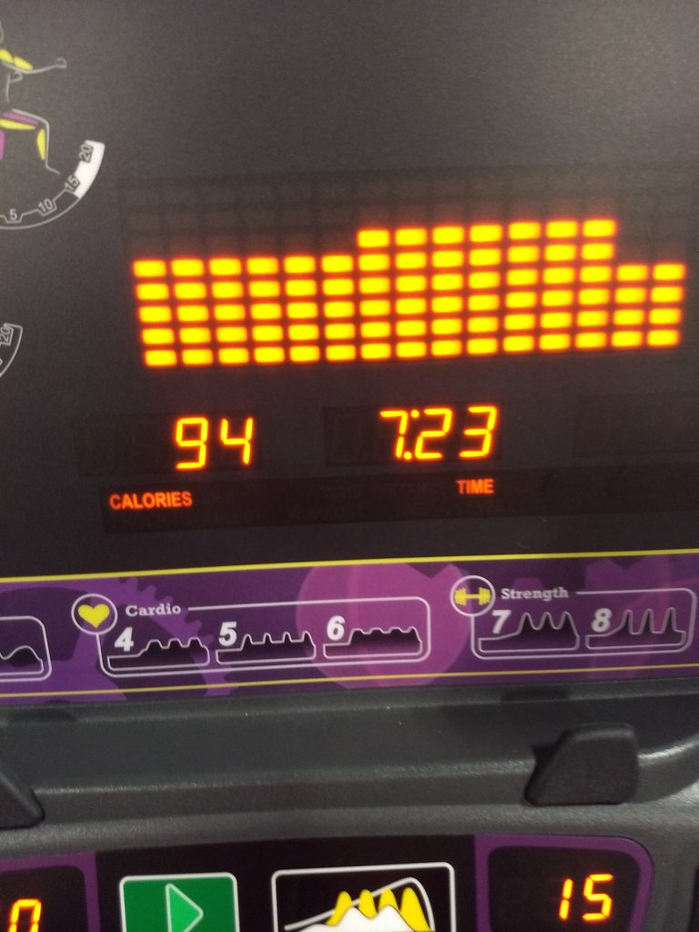 I started today on the treadmill getting in 1.25 miles before heading over to weights. After 30 minutes on weights I thought I would spend some time on the elliptical. That thing kicked my butt. After 7 minutes I was looking for the door. My legs couldn't take anymore.
